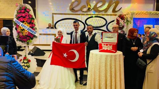 DERNEK ÜYEMİZ UĞUR ÇAMDİBİ KIZI HAVVAYI EVLENDİDİ. SEVENLERİNİN BOL BOL OYNAYIP GÜLDÜĞÜ DÜĞÜNDE ÇANKIRI-ÇERKEŞ-ALİÖZÜ KÖYÜ DERNEĞİ OLARAK İKİ KUTSALIMIZ OLAN OLMAZSA OLMAZIMIZ KURAN-I KERİMİMİZİ VE RENGİNİ ŞEHİTLERİMİZİN KANINDAN ALAN AL BAYRAĞIMIZI DERNEK BAŞKAN YARDIMCIMIZ HÜSEYİN ÇAMDİBİ TARAFINDAN TAKTİM ETTİK.TEKRAARDAN EVLENEN YAVRULARIMIZA ÖMÜR BOYU MUTLULUKLAR DİLİYORUZ. ALLAH BİR YASTIKTA KOCATSIN.